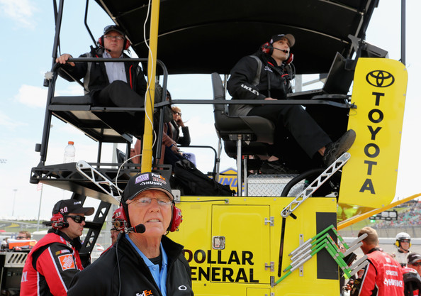 Team owner Joe Gibbs looks on as Matt Kenseth, driver of the #20 The Home Depot/Husky Toyota, races to win the NASCAR Sprint Cup Series STP 400 at Kansas Speedway on April 21, 2013