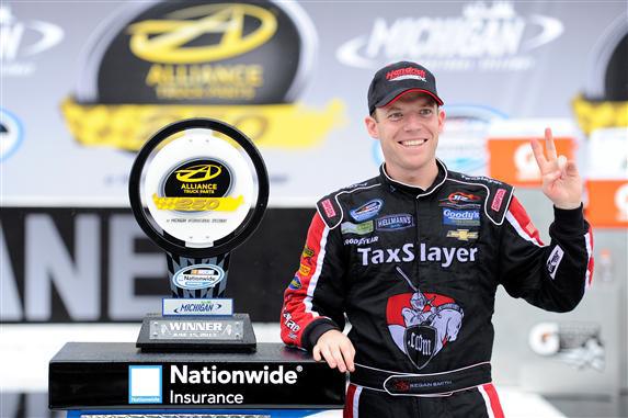 Dicing through the pack toward the end of Saturday afternoon’s Nationwide Series Race at Michigan allowed Regan Smith to take the lead after Parker Kligerman had to pit. Kligerman played the rain game, but failed and that left a golden opportunity for Smith. This is win number two for Smith on the season and increases his point lead to much more than a full-race. It all came together for Smith and allowing him to leave the track in a better place than he entered on Saturday.