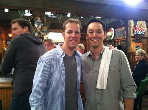Brad Keselowski on set with actor Valerie Azlynn, who plays paramedic Melanie Sutton, on the TBS television comedy “Sullivan & Son,” for an cameo appearance that premieres on Thursday, July 18, 2013 at 10 p.m. ET on TBS Photo – TBS