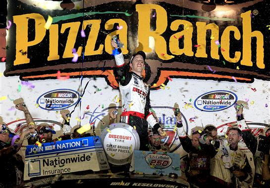 Keselowski will be toting a gas pump trophy back with him after winning the Fifth Annual NASCAR Nationwide Series US Cellular 250 Saturday night at Iowa Speedway. He has won the last three Nationwide starts he has made for Penske Racing, despite not having a Sprint cup victory this season.