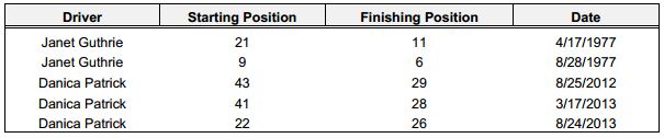 - Two female drivers have made NASCAR Sprint Cup Series starts at Bristol: Janet Guthrie and Danica Patrick.