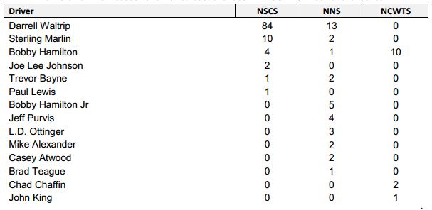 - 104 drivers in NASCAR national series history have their home state as Tennessee