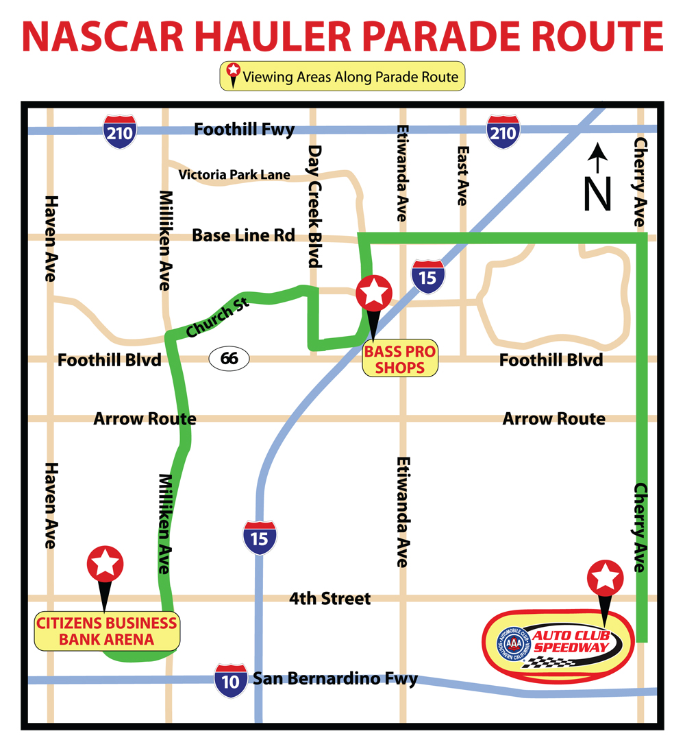 Fans are expected to greet the haulers along the 11-mile parade route, until the haulers make their final approach to Auto Club Speedway. Haulers will be staged by 5 p.m. for fans to take photos and to talk with available Hauler Drivers