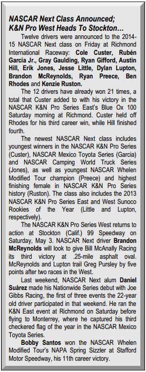 Blaney has three wins in national series competition. In addition to his Nationwide Series win at Kentucky last year, the 20-year-old driver has picked up truck series wins at Pocono (2013) and Iowa (2012).