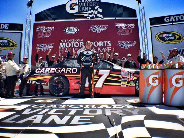 Tom Hessert got a push from his teammate to propel him to the lead with three laps to go to score his first victory at Talladega.