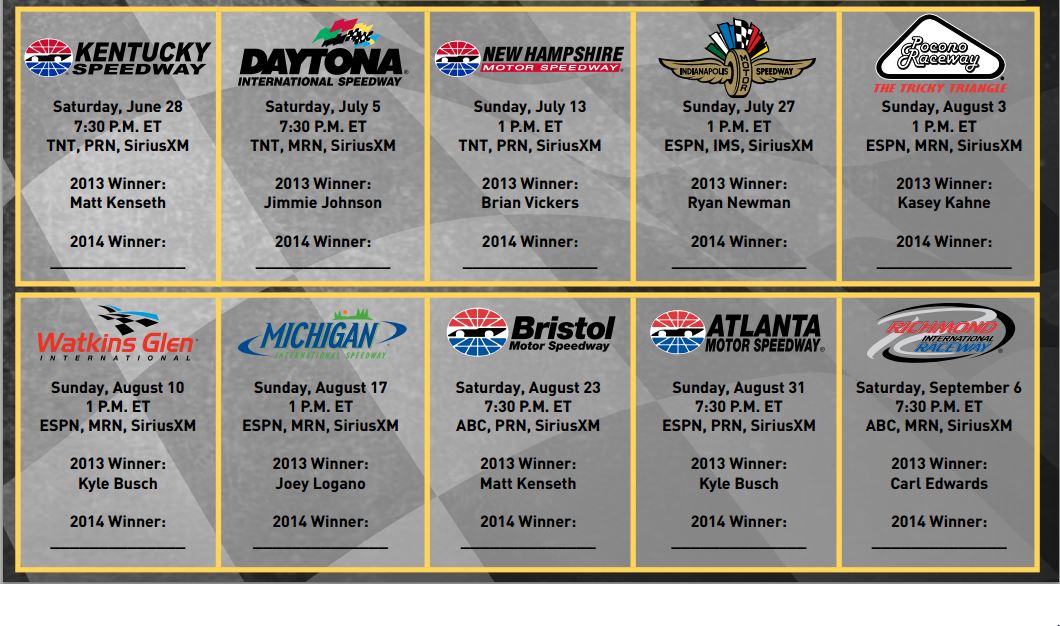Ten races at ten different tracks, to fill in the remaining six drivers to complete the Chase Grid’s Sweet 16 – who will battle for one prize – the Sprint Cup Series Championship.