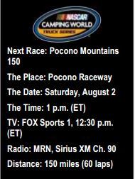 Ron Hornaday: Coming off a season-best second-place finish at Eldora Speedway, Hornaday looks to capitalize on a highest finish of sixth at Pocono last season.