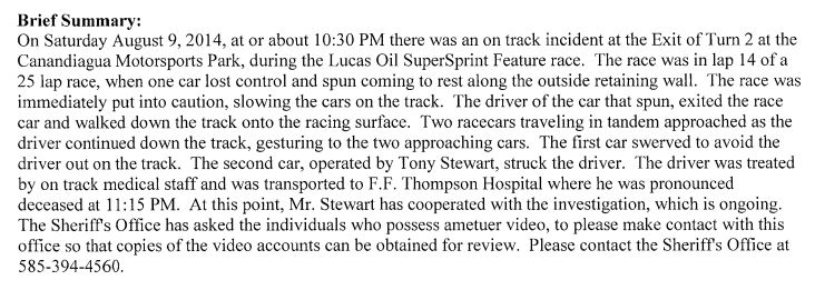 A short while later, Tony Stewart issued the following statement: