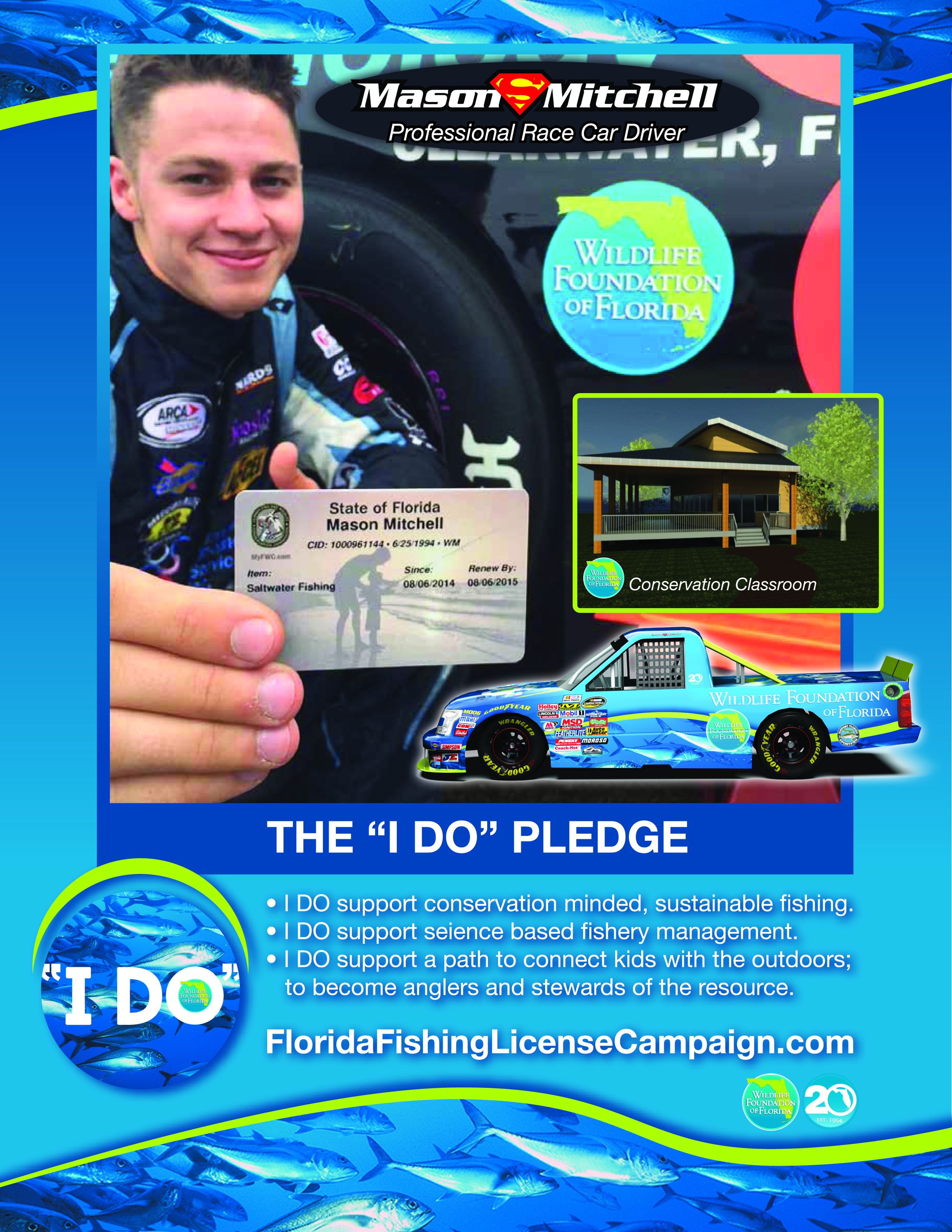 Mitchell and the Wildlife Foundation of Florida are initiating a non-profit campaign to raise money to rebuild the Everglades Youth Conservation Camp and other future important needs of the Foundation. Mitchell and the Wildlife Foundation of Florida would like to run the first ever “I Do” campaign on a conservation themed truck in the NASCAR Camping World Truck Series, or a conservation themed car in the NASCAR Nationwide Series race at Miami Homestead on November 14th– November 15th 2014 or at another NASCAR racing event announced at a later date. In order to raise awareness for the “I Do” campaign, Donors can now donate to the newly launched campaign at http://www.youcaring.com/nonprofits/racing-for-kids-and-conservation/246285