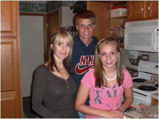 Joey Gase (back) with his mother Mary Jo (left) and his sister Ashley (right)