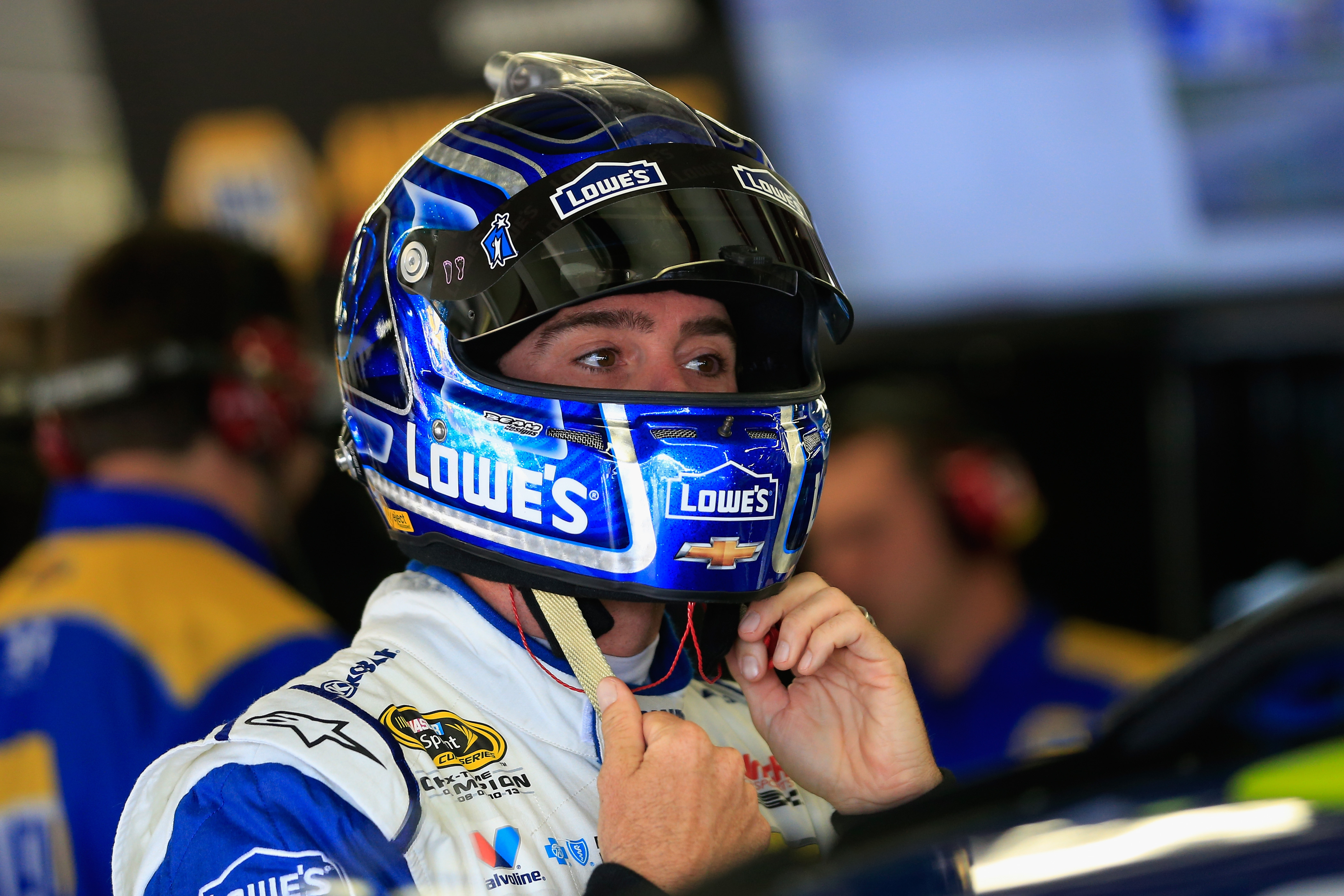Jimmie Johnson, driver of the #48 Lowe’s Chevrolet, stands in the garage area during practice for the NASCAR Sprint Cup Series New Hampshire 301 at New Hampshire Motor Speedway on July 16, 2016 in Loudon, New Hampshire.