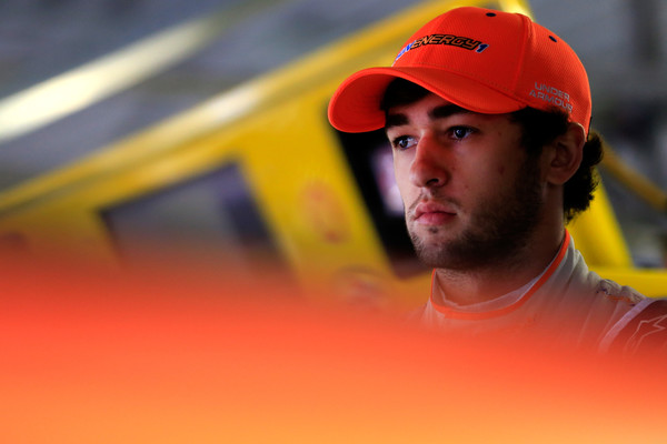 Chase Elliott, driver of the #24 SunEnergy1 Chevrolet, stands in the garage area during practice for the NASCAR Sprint Cup Series Hollywood Casino 400 at Kansas Speedway on October 14, 2016 in Kansas City, Kansas. Photo – Chris Trotman/Getty Images