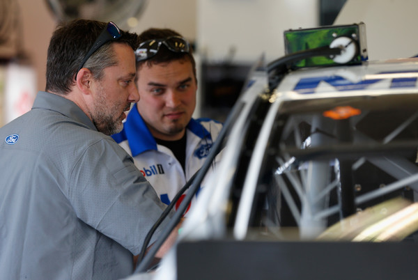 Tony Stewart, co-owner of Stewart-Haas Racing, looks on in the garage area during practice for the 59th Annual DAYTONA 500 at Daytona International Speedway on February 24, 2017 in Daytona Beach, Florida. Photo – Brian Lawdermilk/Getty Images