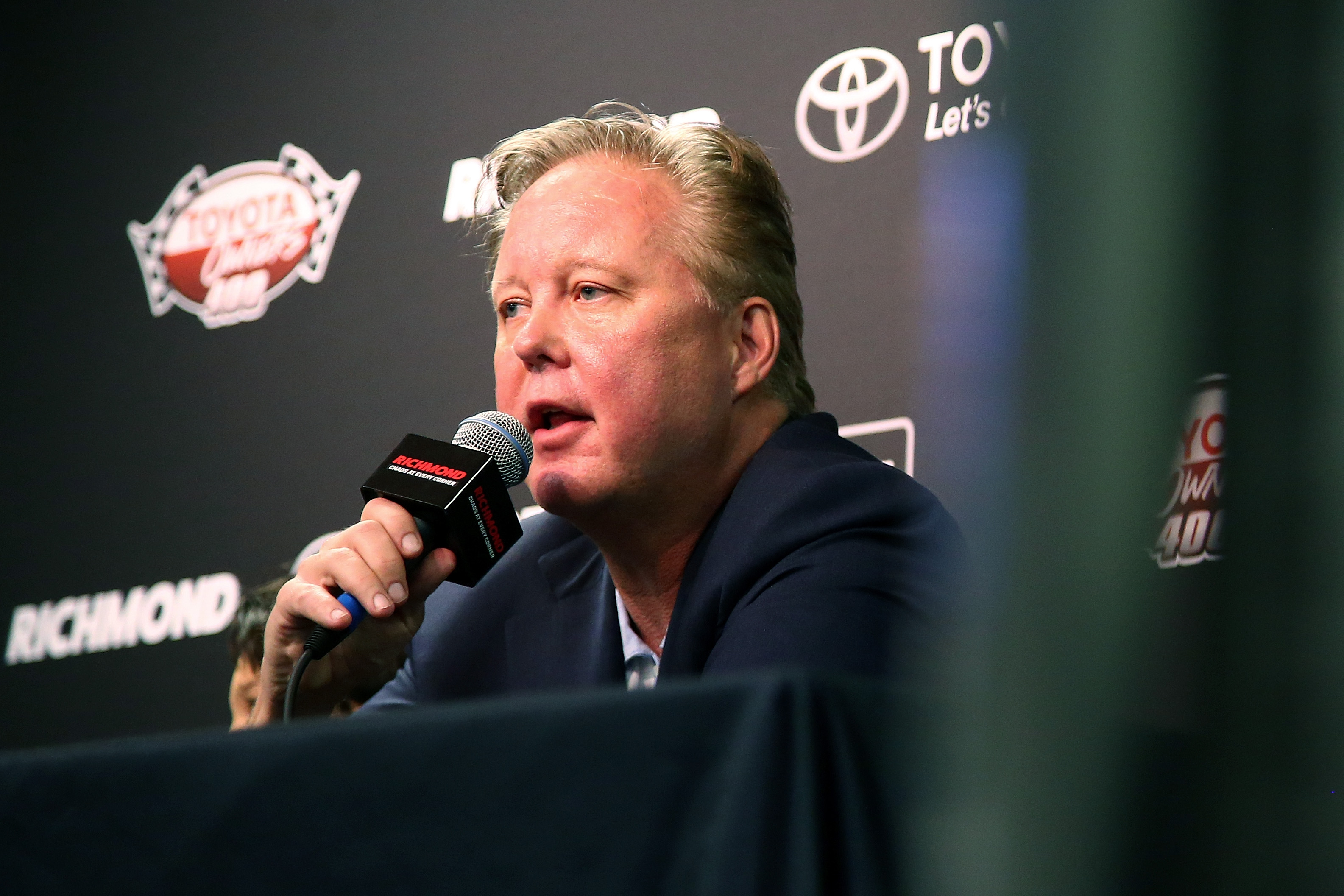 RICHMOND, VA – APRIL 30: NASCAR Chief Executive Officer and Chairman Brian France speaks with the media during a press conference before the Monster Energy NASCAR Cup Series Toyota Owners 400 at Richmond International Raceway on April 30, 2017 in Richmond, Virginia.