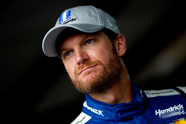 Dale Earnhardt Jr., driver of the #88 Nationwide Chevrolet, stands in the garage area during practice for the Monster Energy NASCAR Cup Series GEICO 500 at Talladega Superspeedway on May 5, 2017 in Talladega, Alabama. Photo – Sean Gardner/Getty Images
