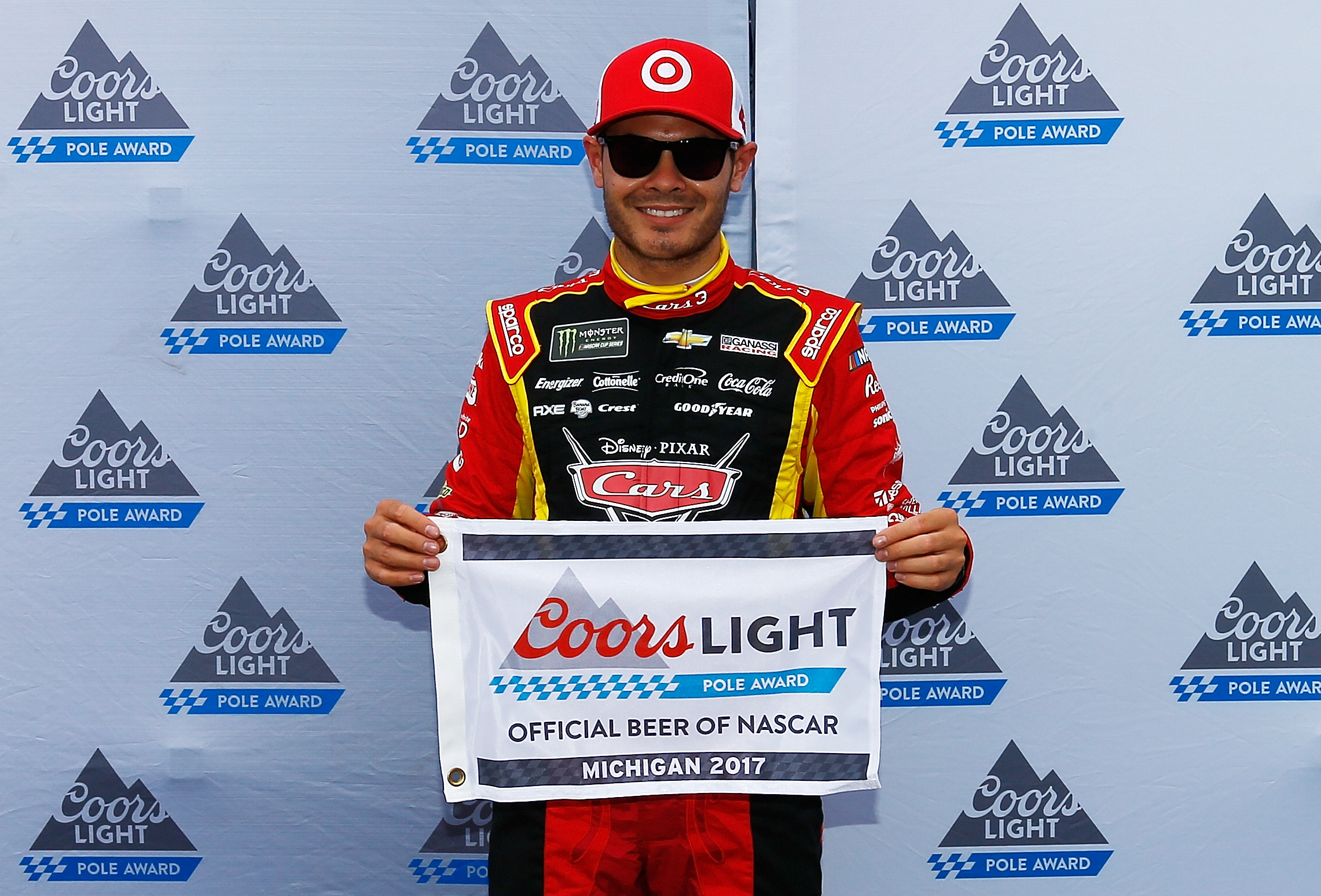 Kyle Larson, driver of the #42 Cars 3/Target Chevrolet, celebrates after winning the pole award for the Monster Energy NASCAR Cup Series FireKeepers Casino 400 at Michigan International Speedway on June 16, 2017 in Brooklyn, Michigan Photo – Jonathan Ferrey/Getty Images