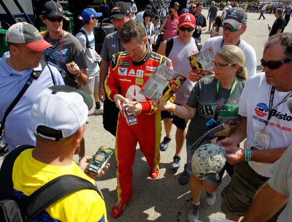 Dale Earnhardt Jr., the driver of the #88 AXALTA Chevrolet, signs autographs for fans during practice for the Monster Energy NASCAR Cup Series Tales of the Turtles 400 at Chicagoland Speedway on September 16, 2017, in Joliet, Illinois. Photo – Brian Lawdermilk/Getty Images