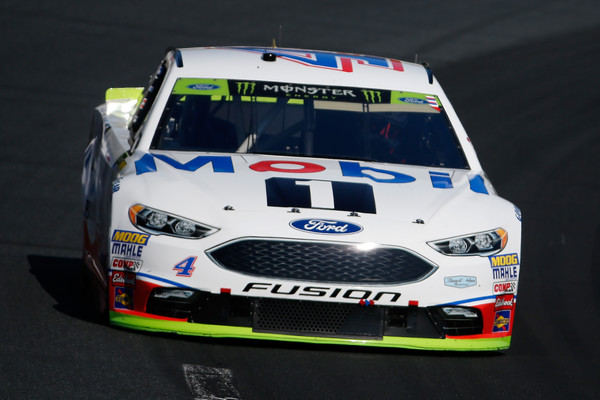 Kevin Harvick, the driver of the #4 Mobil 1 Ford, leads a pack of cars during the Monster Energy NASCAR Cup Series ISM Connect 300 at New Hampshire Motor Speedway on September 24, 2017, in Loudon, New Hampshire. Photo – Jonathan Ferrey/Getty Images
