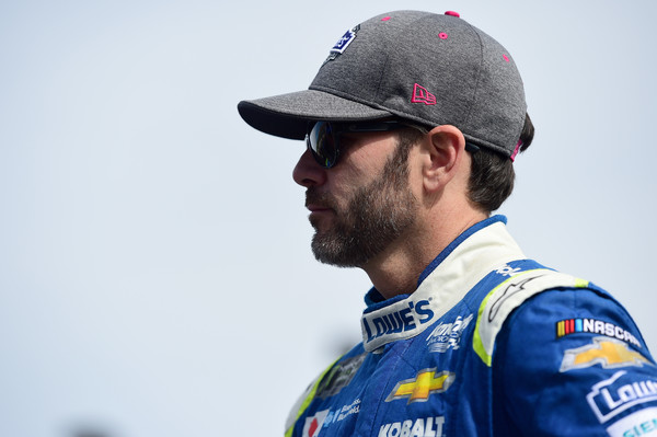 Jimmie Johnson, the driver of the #48 Lowe’s Chevrolet, stands on the grid prior to the Monster Energy NASCAR Cup Series Hollywood Casino 400 at Kansas Speedway on October 22, 2017, in Kansas City, Kansas. Photo – Jared C Tilton/Getty Images