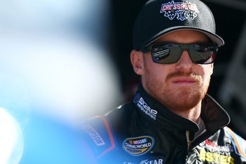 Harrison Burton, the driver of the #51 DEX Imaging Toyota, stands in the garage area during practice for the NASCAR Camping World Truck Series Texas Roadhouse 200 at Martinsville Speedway on October 27, 2017, in Martinsville, Virginia. Photo – Stacy Revere/Getty Images
