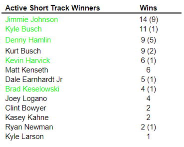 Three drivers remaining in the Monster Energy NASCAR Cup Series Playoffs rank in the top-four in active short track victories.