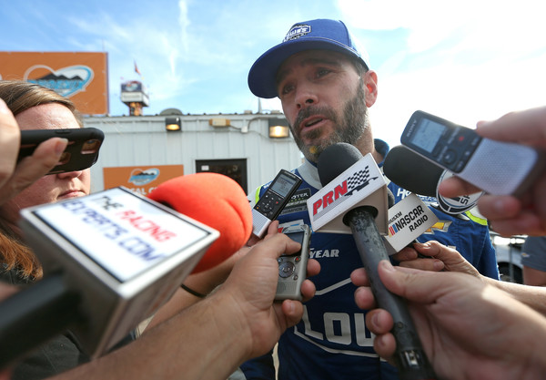 Jimmie Johnson, the driver of the #48 Lowe’s Chevrolet, talks to the media during the Monster Energy NASCAR Cup Series Can-Am 500 at Phoenix International Raceway on November 12, 2017, in Avondale, Arizona. Photo – Matt Sullivan/Getty Images