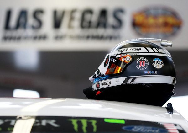 The helmet of Kevin Harvick, the driver of the #4 Jimmy John’s Ford, is seen in the garage during practice for the Monster Energy NASCAR Cup Series Pennzoil 400 presented by Jiffy Lube at Las Vegas Motor Speedway on March 3, 2018, in Las Vegas, Nevada. Photo – Sarah Crabill/Getty Images