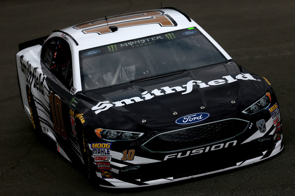 Aric Almirola, the driver of the #10 Smithfield Ford, drives in the garage area during practice for the Monster Energy NASCAR Cup Series Auto Club 400 at Auto Club Speedway on March 16, 2018, in Fontana, California. Photo – Sean Gardner/Getty Images