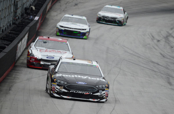Aric Almirola, the driver of the #10 Smithfield Ford, leads a pack of cars the Monster Energy NASCAR Cup Series Food City 500 at Bristol Motor Speedway on April 15, 2018, in Bristol, Tennessee. Photo – Robert Laberge/Getty Images