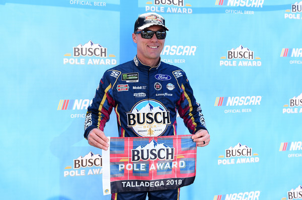 Kevin Harvick, the driver of the #4 Busch Beer Flannel Ford, poses with the Busch Pole Award after qualifying for the pole position for the Monster Energy NASCAR Cup Series GEICO 500 at Talladega Superspeedway on April 28, 2018, in Talladega, Alabama. Photo – Josh Hedges/Getty Images