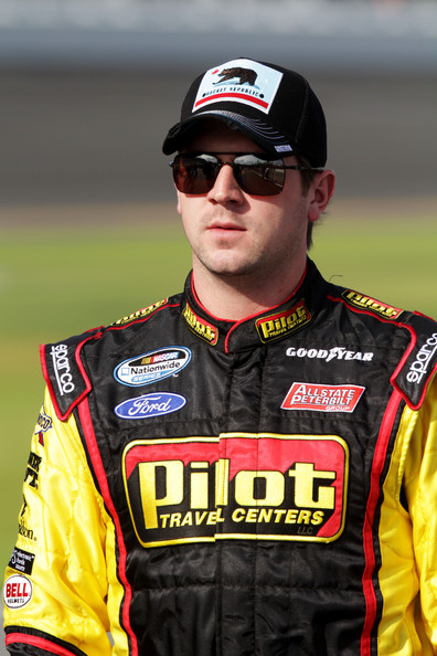 Michael Annett, driver of the #43 Pilot Ford, walks on the grid during qualifying for the NASCAR Nationwide Series DRIVE4COPD 300 at Daytona International Speedway on February 22, 2013