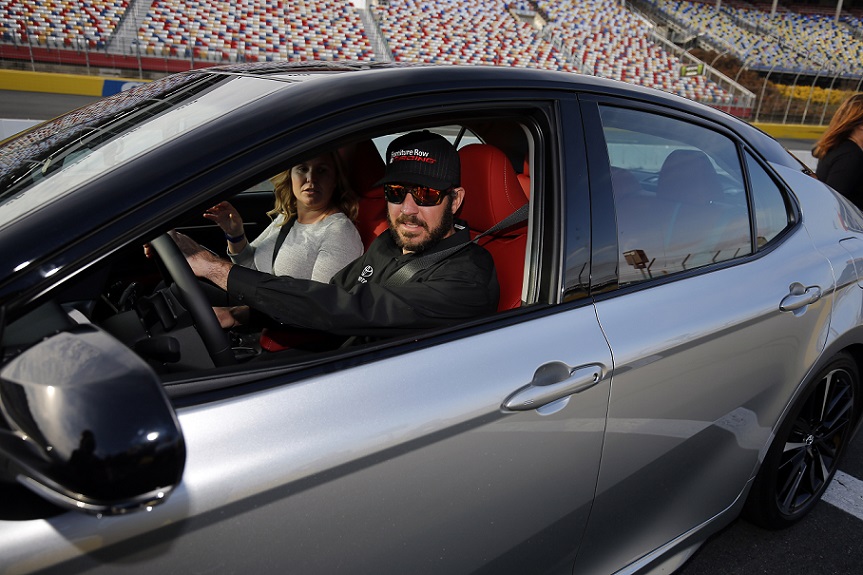 Defending Bank of America 500 winner and reigning Monster Energy NASCAR Cup Series champion Martin Truex Jr. headlined a Roval ride-and-drive event for media in 2018 Toyota Camry XSE cars on Monday at Charlotte Motor Speedway. Photo – HHP/Harold Hinson