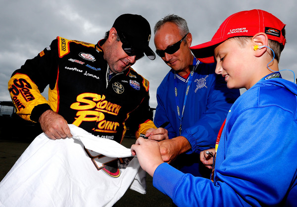 Brendan Gaughan, the driver of the #62 South Point Hotel & Casino Chevrolet, signs autographs during qualifying for the NASCAR XFINITY Series Zippo 200 at The Glen at Watkins Glen International on August 5, 2017, in Watkins Glen, New York. Photo – Sean Gardner/Getty Images