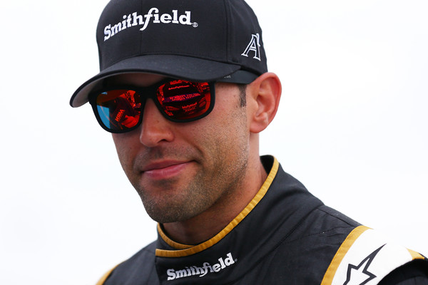 Aric Almirola, the driver of the #10 Smithfield Prime Ford, stands on the grid during qualifying for the Monster Energy NASCAR Cup Series KC Masterpiece 400 at Kansas Speedway on May 11, 2018, in Kansas City, Kansas. Photo – Sarah Crabill/Getty Images