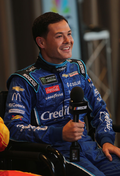 Kyle Larson, the driver of the #42 Credit One Bank Chevrolet, talks to the media during the Daytona 500 Media Day at Daytona International Speedway on February 14, 2018, in Daytona Beach, Florida. Photo – Jerry Markland/Getty Images