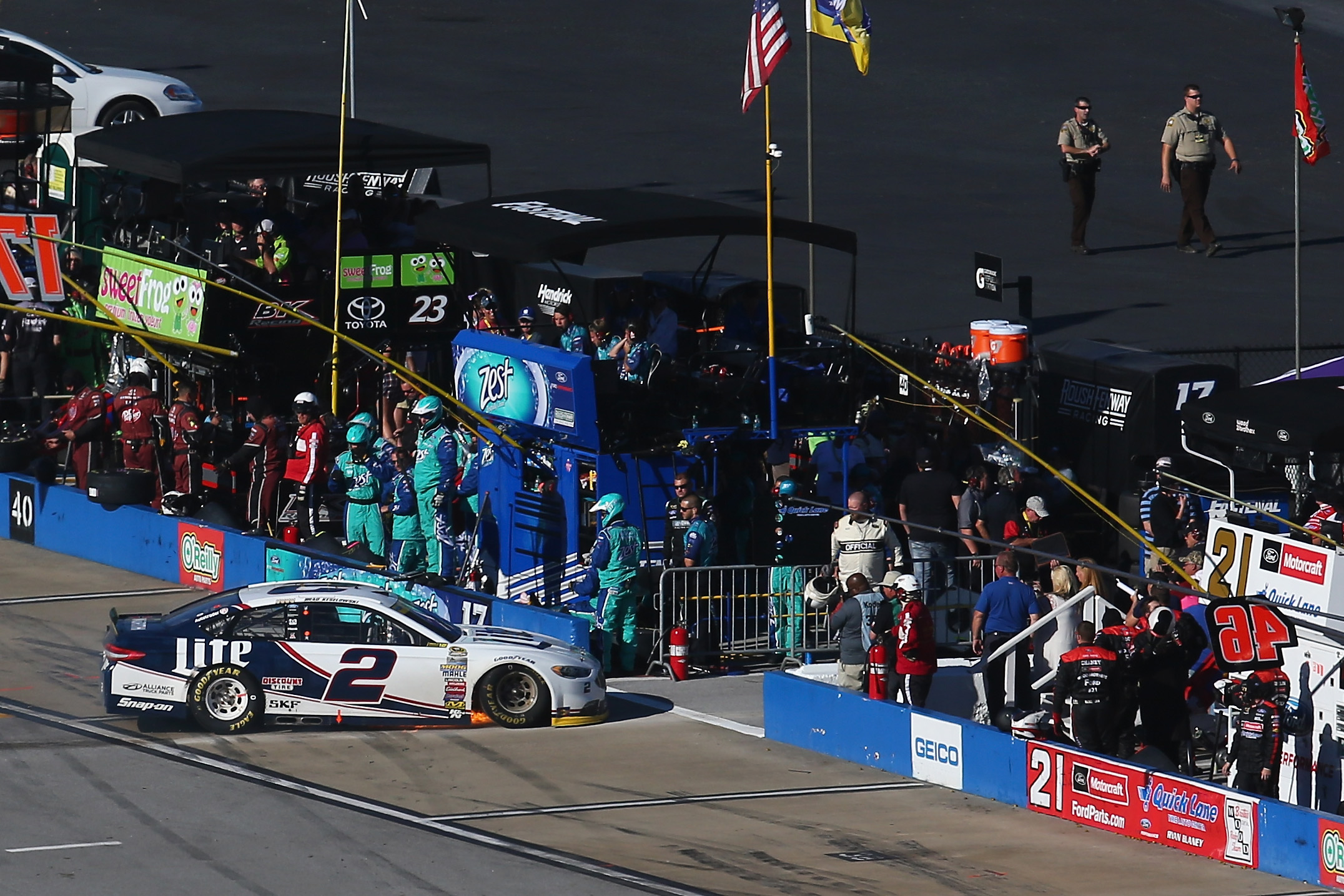 If Joey Logano’s victory in Sunday’s Hellman’s 500 at Talladega Superspeedway was decisive—in relative terms—the race between Denny Hamlin and Austin Dillon for the final pot in the Chase for the Sprint Cup’s Round of 8 was anything but.