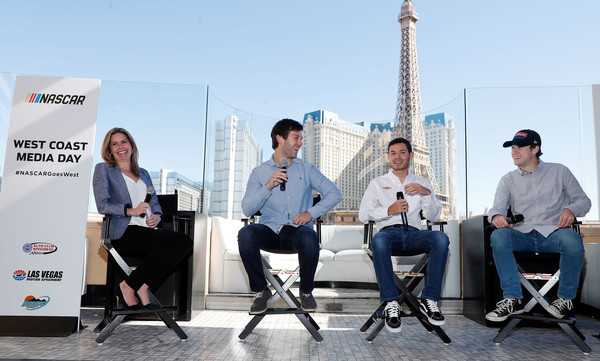 Brad Keselowski, driver of the #2 Miller Lite Ford, races Danica Patrick, driver of the #10 Aspen Dental Ford, during the Monster Energy NASCAR Cup Series Kobalt 400 at Las Vegas Motor Speedway on March 12, 2017 in Las Vegas, Nevada.