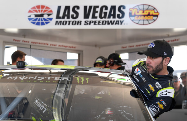 Jimmie Johnson, the driver of the #48 Lowe’s for Pros Chevrolet, gets into his car during practice for the Monster Energy NASCAR Cup Series Pennzoil 400 presented by Jiffy Lube at Las Vegas Motor Speedway on March 2, 2018, in Las Vegas, Nevada. Photo – Robert Laberge/Getty Images