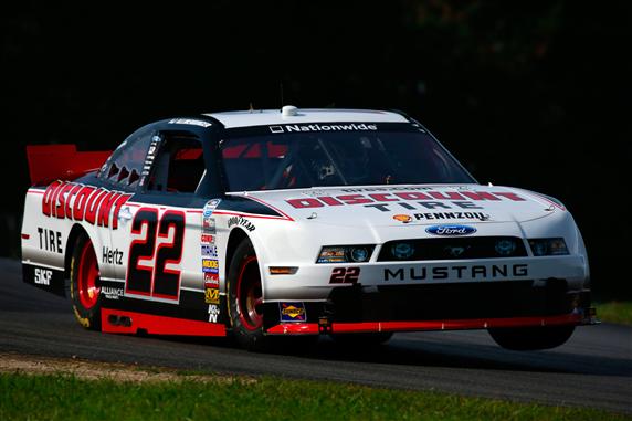 - AJ Allmendinger, driver of the #22 Discount Tire Ford drives during practice for the Nationwide Childrens’s Hospital 200 at Mid-Ohio Sports Car Course on August 15, 2013