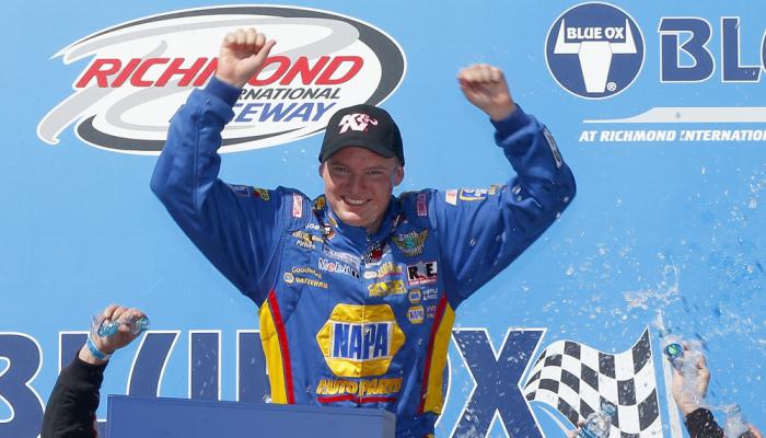 Cole Custer wins the Blue Ox 100 in NASCAR K&N Pro Series East action on Saturday at Richmond International Raceway. Photo – Getty Images
