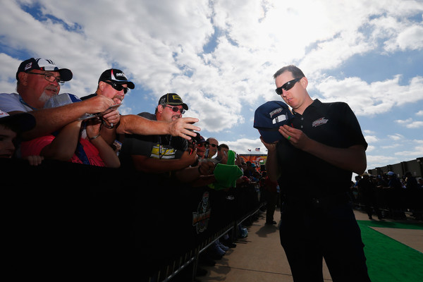 Kyle Busch, driver of the No. 18 Interstate Batteries Toyota, signs autographs for fans ahead of the Monster Energy NASCAR Cup Series O’Reilly Auto Parts 500 at Texas Motor Speedway on April 9, 2017 in Fort Worth, Texas. Photo – Sean Gardner/Getty Images