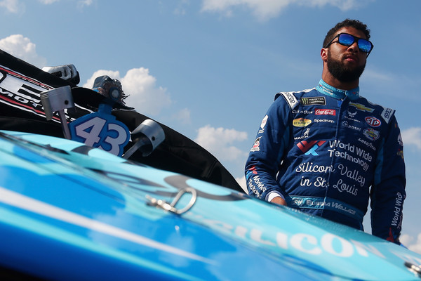 Bubba Wallace, the driver of the #43 U.S. Air Force Chevrolet, stands by his car during practice for the Monster Energy NASCAR Cup Series Coke Zero Sugar 400 at Daytona International Speedway on July 5, 2018, in Daytona Beach, Florida. Photo – Sarah Crabill/Getty Images