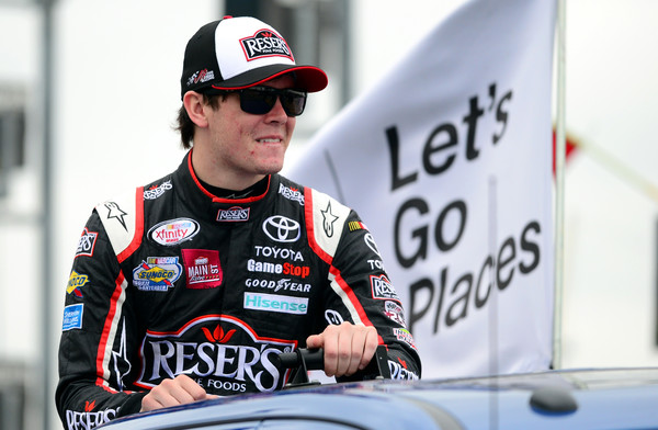 #rik Jones, driver of the #20 Reser’s Main Street Bistro Toyota, looks on prior to the NASCAR XFINITY Series Kansas Lottery 300 at Kansas Speedway on October 15, 2016 in Kansas City, Kansas. Photo – Jeff Curry/Getty Images