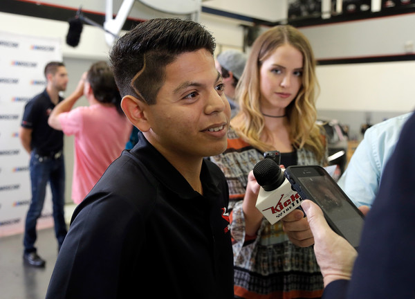 NASCAR driver Ryan Vargas talks with the media about his development with NASCAR’s Drive for Diversity program on November 7, 2017 in Concord, North Carolina. Photo – Bob Leverone/Getty Images