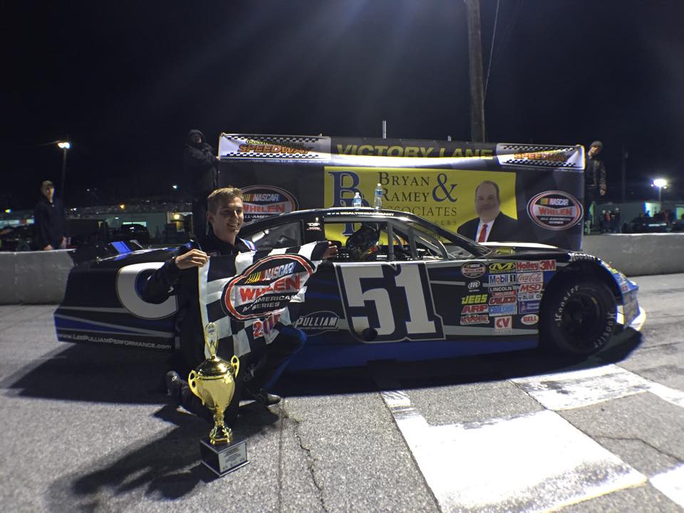 Dalton Sargeant celebrates his first NASCAR Home Tracks Victory at Greenville-Pickens Speedway. Photo – Dalton Sargeant’s Facebook page.