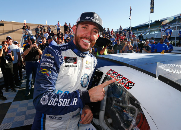 Christopher Bell, the driver of the #20 Rheem Toyota, poses with the winner?s decal on his car in Victory Lane after winning the NASCAR Xfinity Series Bar Harbor 200 presented by Sea Watch International at Dover International Speedway on October 6, 2018, in Dover, Delaware. Photo – Brian Lawdermilk/Getty Images