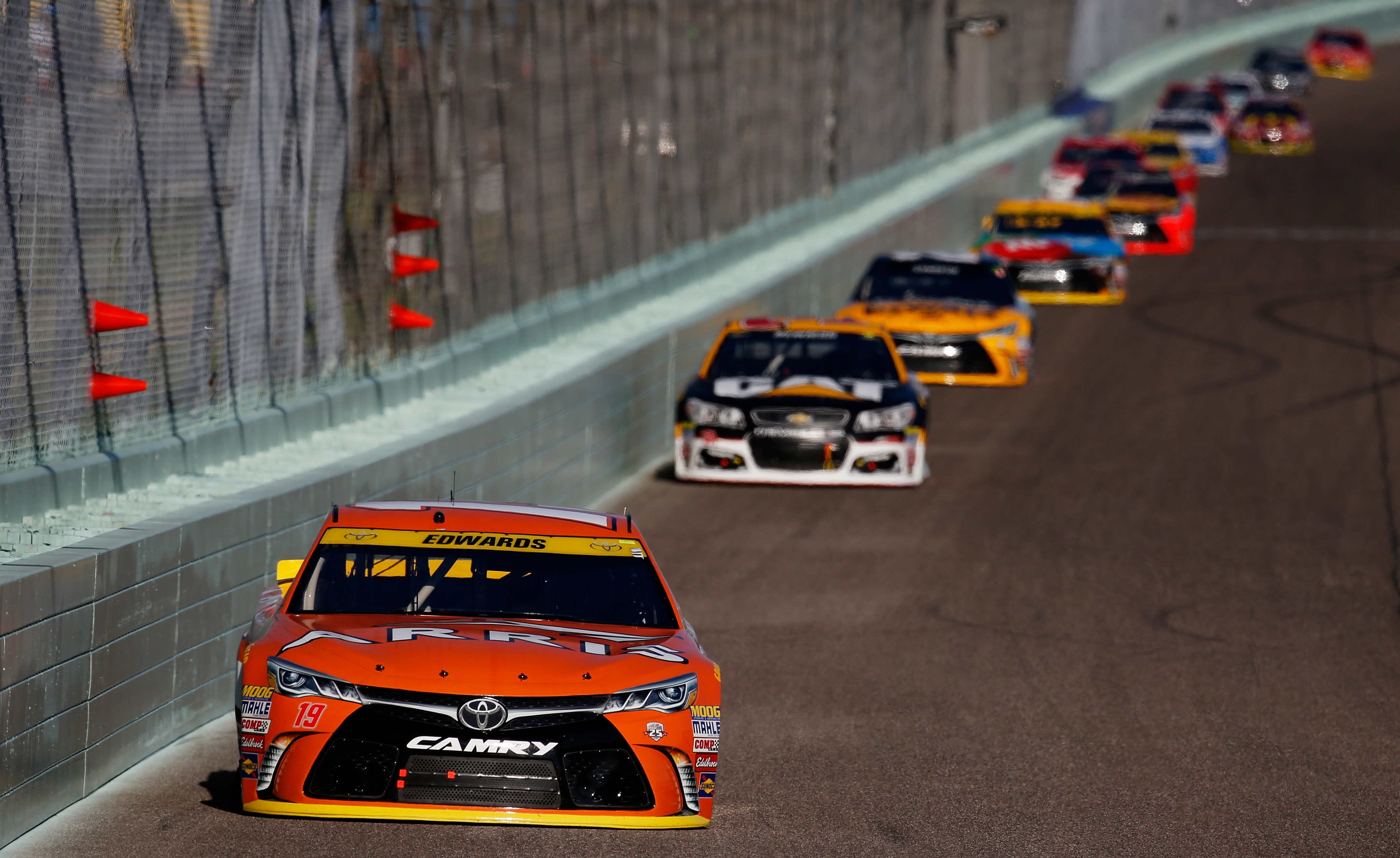 Jimmie Johnson, driver of the #48 Lowe’s Chevrolet, celebrates with the NASCAR Sprint Cup Series Championship trophy in Victory Lane after winning the NASCAR Sprint Cup Series Ford EcoBoost 400 and the 2016 NASCAR Sprint Cup Series Championship at Homestead-Miami Speedway on November 20, 2016 in Homestead, Florida. Johnson wins a record-tying 7th NASCAR title. Photo – Sarah Crabill/Getty Images