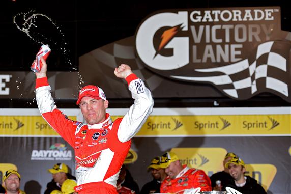 Kevin Harvick, driver of the #39 Budweiser Chevrolet, celebrates in victory lane after winning the NASCAR Sprint Cup Series Sprint Unlimited at Daytona International Speedway on Feb 16, 2013