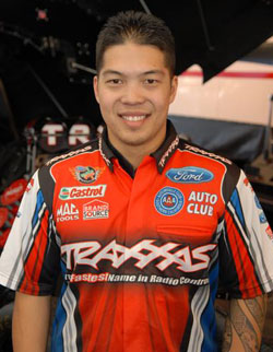Anthony Lum is an engine specialist for John Force Racing’s top fuel dragster, Courtney Force. Hailing from Honolulu, Hawaii, his nickname is ‘Pineapple’ and he now lives in Brownsburg, Indiana. Lum is employed at John Force Racing as of 2012 and via a few questions, fans can learn more about this dynamic JFR team member.