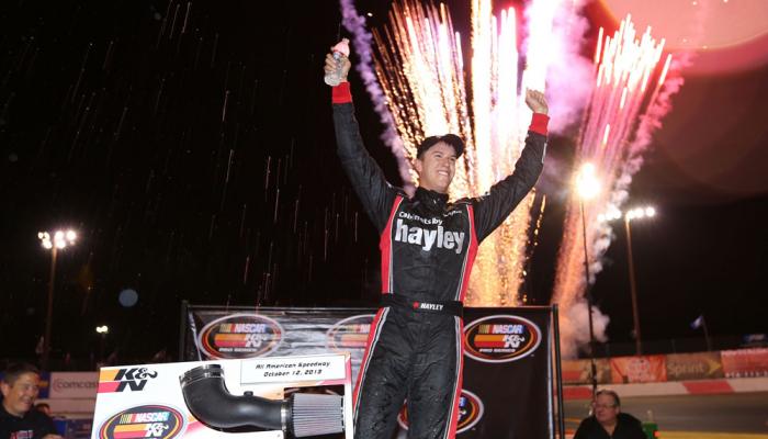 Hayley, a member of the NASCAR Next driver group, first visited victory lane in the NASCAR K&N Pro Series car in the inaugural non-points UNOH Battle at the Beach on the short track at Daytona International Speedway, in February to start the season.